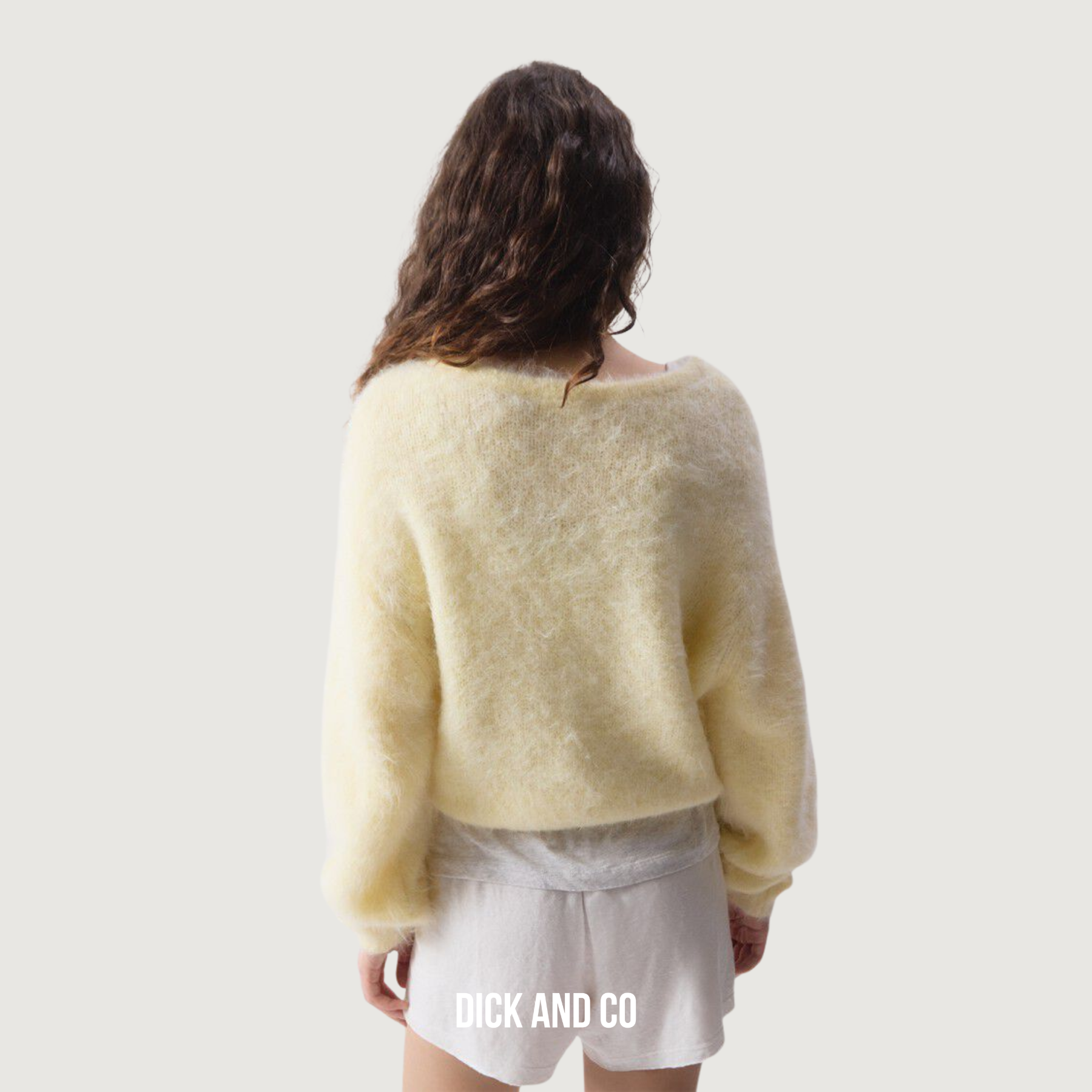 Dit Pull femme Niby is een trui met een korte, ruime pasvorm en een uitgesproken fluffy knitstructuur, uitgevoerd in de kleur Limonade Chine.