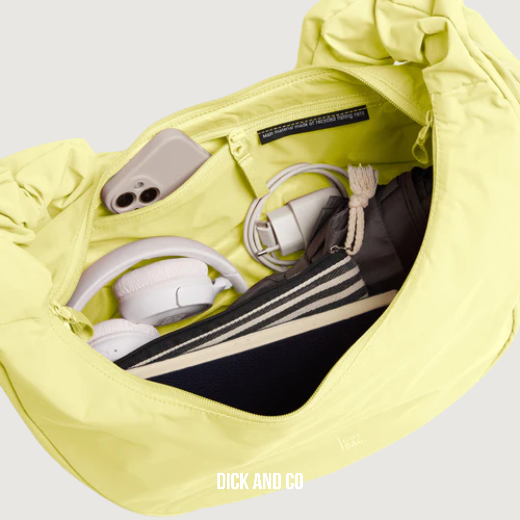 Materiaal: Hoofdmateriaal van gerecycled nylon uit visnetten (RE:NYNET®), binnenmateriaal van gerecycled nylon, ritsen van PA, vulling van gerecycled polyester