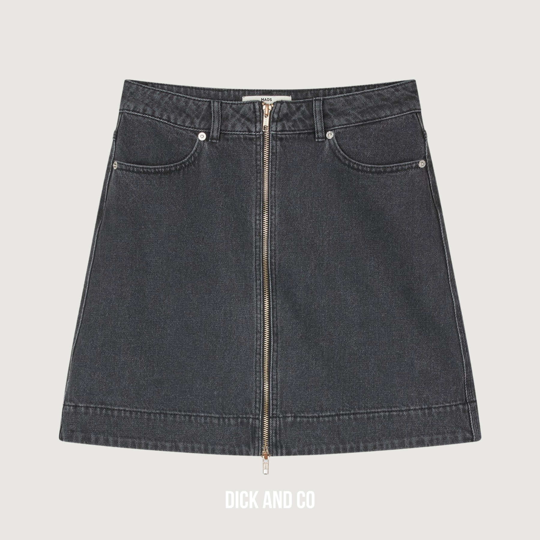 Deze Luke Black Denim Riva Skirt van Mads Nørgaard is een korte, lichtgewicht rok met een A-lijn silhouet, uitgevoerd in stevig zwart denim. De zichtbare stiksels geven het ontwerp een stoer en grafisch karakter, terwijl de klassieke denimdetails zorgen voor een tijdloze uitstraling.