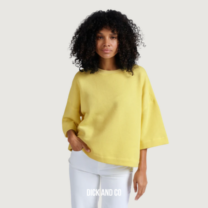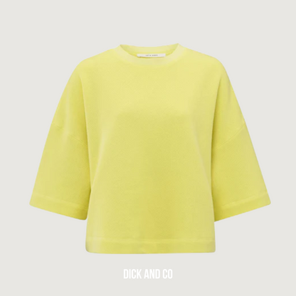 Deze YAYA sweatshirt met losse pasvorm is uitgevoerd in de kleur Lemon Grass Yellow en gemaakt van 78% katoen / 22% polyester.